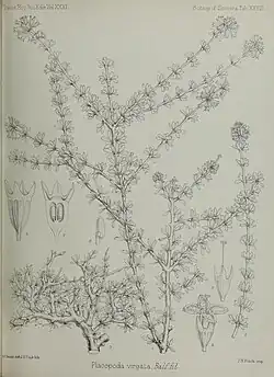 Dirichletia virgata, synonym Placopoda virgata, is a species of plant in the family Rubiaceae. It is a shrub endemic to the islands of Socotra and Samhah in Yemen's Socotra Archipelago. It is widespread plant in low-elevation shrublands and woodlands, including Croton socotranus shrubland and drought-deciduous woodland, on coastal plains, dry foothills, and limestone plateaus from 10 to 600 metres elevation.[1]