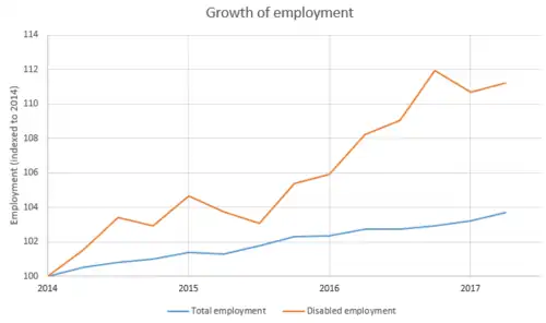 - ^ "A08: Labour market status of disabled people - Office for National Statistics". Ons.gov.uk. Retrieved 2018-03-09.