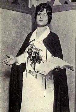 Many sightings of McPherson were reported.[5] A Culver City detective thought he had seen her drive from the beach in her Angelus Temple uniform[6] but this turned out to be a parishioner wearing clothes typical of those worn by female Temple members.[7] On one particular day she was "seen" in 16 different cities.[8] A spiritualist said McPherson was bound in a cabin.[9]