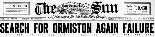 - ^ The San Bernardino County Sun Saturday September 25, 1926, page 1.