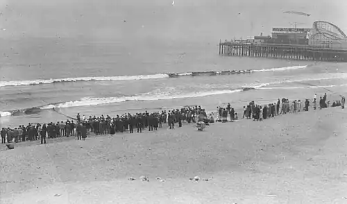 McPherson was scheduled to hold a service that day; her mother Minnie Kennedy preached the sermon instead, saying at the end, "Sister is with Jesus," sending parishioners into a tearful frenzy. Mourners crowded Venice Beach and the commotion sparked days-long media coverage fueled in part by William Randolph Hearst's Los Angeles Examiner and a stirring poem by Upton Sinclair. Daily updates appeared in newspapers across the country and parishioners held day-and-night seaside vigils. Two people died searching for McPherson's body.