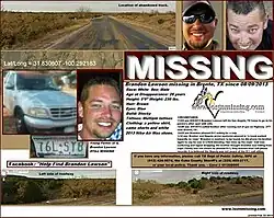 - ^ a b c d e f g h i j k l m n o Johnson, Krista (July 12, 2018). "The mystery around the disappearance of Brandon Lawson". San Angelo Standard-Times. Gannett. Archived from the original on November 29, 2020. Retrieved October 27, 2020.