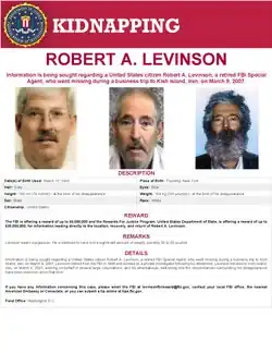 41. ^ "FBI — Eight Year Anniversary of the Disappearance of Robert A. Levinson". FBI. Archived from the original on March 31, 2020. Retrieved July 28, 2016.