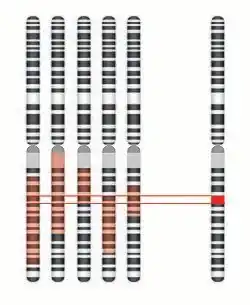 Identity by descent (IBD) mapping generally uses single nucleotide polymorphism (SNP) arrays to survey known polymorphic sites throughout the genome of affected individuals and their parents and/or siblings, both affected and unaffected. While these SNPs probably do not cause the disease, they provide valuable insight into the makeup of the genomes in question. A region of the genome is considered identical by descent if contiguous SNPs share the same genotype. When comparing an affected individual to his/her affected sibling, all identical regions are recorded (ex. Shaded in red in above figure). Given that an affected sibling and an unaffected sibling do not have the same disease phenotype, their DNA must by definition be different (barring the presence of a genetic or environmental modifier). Thus, the IBD mapping results can be further supplemented by removing any regions that are identical in both affected individuals and unaffected siblings.[3] This is then repeated for multiple families, thus generating a small, overlapping fragment, which theoretically contains the disease gene.