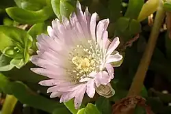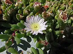 Disphyma australe is a species of flowering plant in the family Aizoaceae and is endemic to New Zealand. It is a prostrate, succulent annual shrub or short-lived perennial plant with stems up to 2 m (6 ft 7 in) long, leaves that are three-sided in cross-section with a rounded lower angle, and white to deep pink daisy-like flowers[2][3] that are 2–4 cm (0.79–1.57 in) in diameter with 3–5 rows of petals and multiple stamens.[4] Disphyma australe is a coastal plant and therefore can be found at cliff faces, gravel beaches, salt meadows and estuaries.[5]