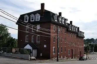 District D is a historic worker housing district located in Manchester, New Hampshire, near the former Amoskeag Manufacturing Company millyard. It is roughly bounded by Canal, Langdon, Elm, and West Brook streets, and was added to the National Register of Historic Places on November 12, 1982. It contains three residential buildings constructed in 1864 in an area of about 3 acres (1 ha).[1]