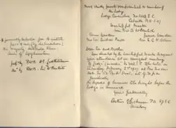 23. ^ "Studd Collection – Film 1. Description: B&W. 11:36min. Calcutta (Kolkata), India. December 1927 – January 1928. Film made by Sir Eric Studd. Grand Lodge Deputation to India. Inspecting the construction of a new building at Freemasons Hall. Outdoor scenes of the Masonic Headquarters. Viceroy's Cup. Arrival of Viceroy, Sir Stanley Jackson, Governor of Bengal. Extended sequence of Masonic processions to church service, St. Jones, Calcutta. Group portrait of Lord Cornwallis (Grand Deputy Master), Sir John Ferguson (Past Grand Treasurer), Sir J.E. Kynaston Studd (Past Grand Deacon), Col. S. Pleydell-Bouverie (Dy. G. Director of Ceremonies) and Bishop Foss-Westcott. Scenes of Masonic procession. Short scene of Sir Eric Studd (Dy. District Grand Master). NB: Special thanks to Martin Cherry, Librarian at the Library and Museum of Freemasonry, London, for providing invaluable background information".