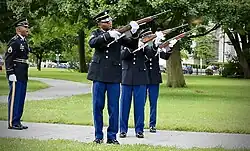 The District of Columbia Army National Guard Honor Guard is the Army National Guard's official Honor Guard program for the District of Columbia. The mission of the DCARNG Honor Guard is to provide military funeral honors (MFH)[1] to qualifying veterans and participate in ceremonial and special events. Based on the mission and support needed, selected members of the Air National Guard's Honor Guard program are required to work jointly with the DCARNG to support missions that fall under the DCNG as a whole. The DCARNG Honor Guard program is assigned to the District of Columbia National Guard (DCNG) Joint Force Headquarters (JFHQ) Command.