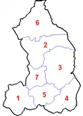 Prior to 2002, Rwanda was composed of prefectures, subprefectures (which were sometimes called "districts")[1] and 154 communes (Kinyarwanda: imijyi, sing. umujyi).[2][3] In 2002, communes were replaced by two kinds of divisions called districts and municipalities (Kinyarwanda: akarere and umujyi).[2] In 2006, the number of districts was reduced from 106 to 30.[2]