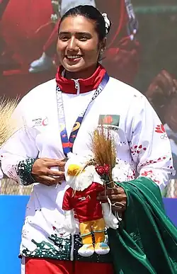 Diya Siddique (born 19 February 2004)[1] is a Bangladeshi archer.[2] On 23 May 2021, she along with Ruman Shana claimed silver medal in the recurve mixed team event during the 2021 Archery World Cup where Bangladesh emerged as runners-up to Netherlands in the final.[3][4] Despite losing the final 5–1, it was the best performance by Bangladesh at an Archery World Championship.[5] It also marked the first instance whereas Bangladesh managed to reach final in an event of Archery World Cup.[6]