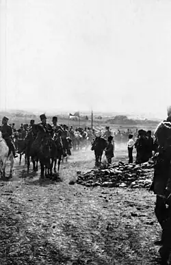 While Korkmasov was imprisoned the Socialist Group resolved to dissolve itself on 16 February 1919, merging with the Russian Communist Party (Bolshevik).[29] A month later, the anti-communist Russian White movement, led by General Anton Denikin, launched an invasion of Chechnya. This was followed by an invasion of Dagestan two months later. As the government of the Mountainous Republic collapsed, Prime Minister Pshemakho Kotsev fled to the Dargin District to negotiate an alliance between Ali-Hajji and Uzun-Hajji against the Russian invasion.[30] Meanwhile, the Bolshevik underground fled to Baku.[31] During this time Korkmasov ended up out of imprisonment, and he travelled to the village of Levashi to join Ali-Hajji's anti-White insurgency.[32]
