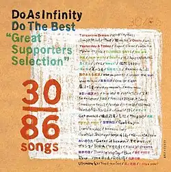 Do the Best "Great Supporters Selection" is a fan-selected collection chosen through an online poll held by avex trax on Do As Infinity's official site after its disbanding. It was released among five other different Do As Infinity items on the same day. Fans were allowed to pick ten songs and a choice to leave comments; many fans from overseas also took part in the process, but only three comments from overseas fans were selected to be printed into the book, one each from Canada, United States, and Taiwan. All the names of the voters were printed in the book however. This two-disc album comprised thirty songs out of the eighty-six total Do As Infinity songs (not including any remixes or new arrangement mixes); surprisingly, not all of the band's A-sides were included in the album. The cover of the album lists the titles of the 86 songs that Do As Infinity has written so far in no particular order. There are no pictures of Do As Infinity included in the album at all.