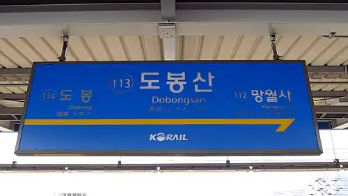 - ^ a b c d 도봉산역 (in Korean). KRIC. Retrieved 2015-09-16.