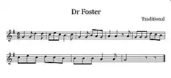 "Doctor Foster" is an English language nursery rhyme that has appeared in many anthologies since the nineteenth century. It has a Roud Folk Song Index number of 19288.