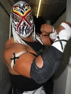 In 2007 most members of Pandilla Guerrera broke away from Los Guerreros del Infierno, wanting to break out of their shadow and move up the rankings themselves. Doctor X, Arkangel de la Muerte, Nitro, Skándalo, Hooligan and Loco Max formed a group originally known as Rebeldes del Desierto (rebels of the desert) and later called Los Guerreros Tuareg (Tuareg warriors). Despite objections from Los Guerreros del Infierno that the name was too close to theirs, Guerreros Tuareg is the name that has stuck for the group. Doctor X became the interim co-leader of Guerreros Tuareg along with Arkangel when Nitro suffered a serious injury in early 2009. Since forming Guerreros Tuareg Doctor X has not worked regularly in Arena Mexico, CMLL's main arena, something which he has expressed his unhappiness with. He has publicly stated that he feels passed over for wrestlers with "1/10" his talent.[8] On 18 October 2009 Doctor X was one of 12 wrestlers who put his mask on the line in a 12-man Luchas de Apuestas cage match. He was the fifth person to escape the cage keeping his mask safe, the final saw Pólvora pin Tigre Blanco to unmask him.[14] In April 2010, Doctor X began a feud with Fabián el Gitano, a feud that saw both wrestlers intentionally disqualified several times as they tore each other's masks off.[15] During the 12-man steel cage match in the main event of the 2010 Infierno en el Ring Doctor X primarily targeted his rival Fabián el Gitano, but when it came down to it in the end he decided to leave the cage instead of trying to unmask Fabián. In the end Ángel de Oro defeated Fabián el Gitano in the Lucha de Apuesta (bet match) portion of the match instead, unmasking him.[16] Dr.X took then part in a 12-man cage match on Christmas day of 2010 in Arena Neza including both CMLL and independent luchadores, winning the mask of Hermano Muerte III. On 4 August 2011, it was reported that Doctor X had quit CMLL.[17]