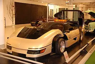 The Dodge M4S is an American prototype high-performance sports coupe originally engineered, designed, and built by Dodge in 1981 as a technology demonstrator vehicle. The designation M4S denotes "Mid-engine, 4-cylinder, Sport“. It was developed in collaboration with PPG Industries in the early 1980s and was used intermittently from 1984 to 1987, including as an Indy 500 pace car.