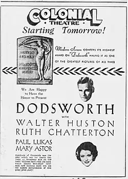 - ^ "Mr. and Mrs. Walter Huston Star Tonight in "Dodsworth"". Youngstown Vindicator (Ohio). 1937-10-04. p. 10. Retrieved 2021-06-30.