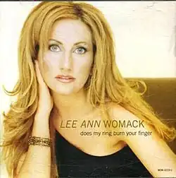 "Does My Ring Burn Your Finger" is a song written by husband and wife duo Julie and Buddy Miller. It was originally recorded by Buddy on his third studio album Cruel Moon, released in 1999.[2] American country music artist Lee Ann Womack took an interest in the song and recorded her own version for her third studio album I Hope You Dance (2000).[3] Her version features backing vocals by the Millers. The song would be officially released on October 29, 2001, as the fourth and final single from the album via MCA Nashville Records.
