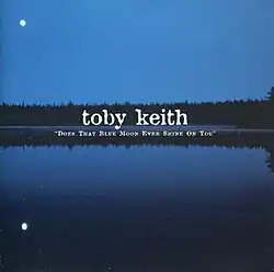 "Does That Blue Moon Ever Shine on You", or simply "Blue Moon", is a song written and recorded by American country music artist Toby Keith. It was released on February 27, 1996, as the lead single from his 1996 album Blue Moon. The song peaked at number 2 on the US Billboard Hot Country Songs chart and reached number 9 in Canada. Keith wrote the song in 1987,[1] and first released it that year on an independent label.[2][3] It is the first lead single by Keith that does not feature as the opening track on the album.