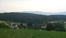 The ruins of Radelstein Castle[2] (Slovene: Radelca,[2] Radelštajn,[5] or Rajtšole[5]) stand in the valley between the hamlet of Sela and Senica Hill.[5] The castle was built in the 16th century by the Sauraui noble family.[6] During the Second World War, German forces maintained stalls at the castle where livestock were taken after the local inhabitants were expelled in order to make room for new ethnic German settlers from Gottschee. The castle was burned by the Partisans in October 1943.[5] The damage from the fire was exacerbated by stockpiles of gasoline at the castle, which were also burned.[6]