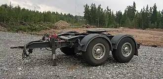 • Converter dolly, equipped with between one and three axles and designed to connect to a towbar on the rear of the truck or trailer in front. There are two variants of this: