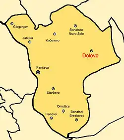 Dolovo (Serbian Cyrillic: Долово, Romanian: Doloave) is a village in Serbia. It is situated in the Pančevo municipality, in the South Banat District, Vojvodina province. The village has a Serb ethnic majority and its population is 5,569 (2022 census). The place name means location of troughs.