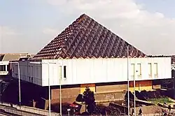 Havering London Borough Council approved the design and £7.5 million construction of the Dolphin Centre in April 1980; it was named after a public house which existed in the nearby Romford Market from 1630 to 1900.[1] When the centre was opened in April 1982, by Prince Richard, Duke of Gloucester, it had a state-of-the-art pyramid roof (the first of its kind in Europe). However, corrosion and the collapse of one of the panels in the roof led to it being draped with netting in 1990 to calm safety fears.