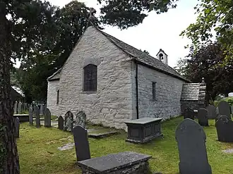The parish church was built in c. 1500, likely by Maredudd ab Ieuan, and was originally a single-cell building. A south chapel was added in the sixteenth century by Robert Wynn of Plas Mawr, Conwy, and a north porch shortly before 1850 by Baron Willoughby de Eresby, who also paid to have the church re-roofed.[14] It is a grade I listed building.[23]