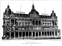 The first Hotel du Dome to open on the location was established by Ignatz Theodor Metz (1819-1880) in 1857, after purchasing an existing building two years earlier. After a construction damage a renovated hotel was opened in 1866. The current building became the third building on this site, completed in 1893 but severely damaged during the Second World War. After reconstruction during the 1950s, the former roof-story has been left away.
