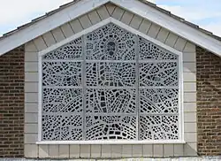 A Roman Catholic church, built in 1963, by Henry Fedeski ARIBA, with extensive dalle-de-verre glass by Dom Charles Norris OSB of Buckfast Abbey, and mosaic by Steven Sykes.[16] Although designed by Norris, the glass itself was made at Prinknash Abbey.[17]