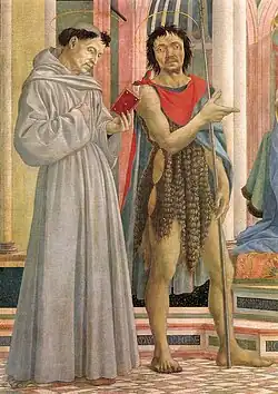 The predella included panels with scenes of the saints of the main composition, and a central, double-size Annunciation: the Stigmata of St. Francis and John Baptist in the Desert are currently in the National Gallery of Art in Washington, the Annunciation and The Miracle of St. Zenobius are in the Fitzwilliam Museum of Cambridge, and the Martyrdom of St. Lucy is in the Berlin State Museums.