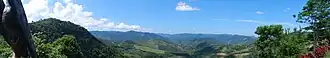 It is in the mountainous region of the state and is marketed as the "Green City", since it is surrounded by subtropical rainforest, much of which has disappeared in the rest of the region. Within its borders lie mountains of up to 2000m, amongst which is the well-known Pedra Azul State Park consisting mainly of a quartzite rock jutting out of the surrounding landscape at 1,822m above sea level. It has a blue tinge to the stone due to the kind of lichens which grow on it, which gives the name to the formation and the park.