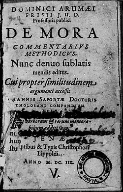 - De mora commentarius methodicus (in Latin). Jena: Christoph Lippoldt. 1608.