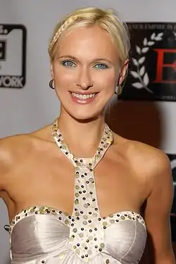 She plays classical piano and speaks Polish, French and English. Since switching to a serious pursuit of a film career in 2001, Wolski has guest starred on almost every series on the West Coast Vancouver film scene including Under the Cover which she wrote and starred in. Wolski travelled to Mozambique by invitation of director Ed Zwick to visit the set of Blood Diamond: she was also a guest at the Los Angeles premiere in December. Wolski actively supports actors working for social and environmental change: she is a member of Hollywood Hill, drives a VW Beetle and hopes to help promote clean diamonds as an alternative for her fellow actresses for glamorous events. She is also a big fan of animal & dog causes - her childhood "brother" was a large German Shepherd/Wolf cross called "Nero".[4]