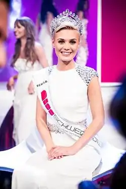 Dominique Rinderknecht (born 14 July 1989) is a Swiss model, TV host and beauty pageant titleholder who won the title of Miss Switzerland 2013 and represented her country at the Miss Universe 2013 pageant.[1]