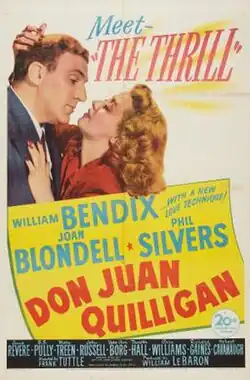 Don Juan Quilligan is a 1945 American comedy film directed by Frank Tuttle and written by Arthur Kober and Frank Gabrielson. The film stars William Bendix, Joan Blondell and Phil Silvers and was released on June 1, 1945, by 20th Century Fox.[2][3][4]
