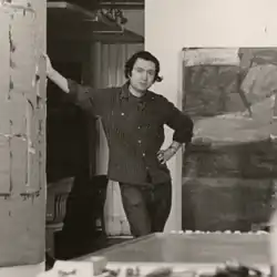 ![]() Don Kunz in his painting studio in New York City, approximately 1972 | |