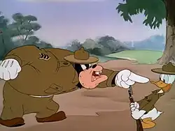 Donald Gets Drafted is a 1942 American animated short film produced by Walt Disney Productions and released by RKO Radio Pictures.[1] The cartoon has Donald Duck being drafted into the U. S. Army during World War II and follows his introduction to military life. The film was directed by Jack King and introduced the song "The Army's Not the Army Anymore" by Carl Barks and Leigh Harline. It was also one out of two shorts in the series that featured Donald's drill sergeant hat in the opening headshot (with the other being his following short Sky Trooper). The voice cast includes Clarence Nash as Donald, John McLeish as an officer, and Billy Bletcher as Pete who is Donald's drill sergeant.