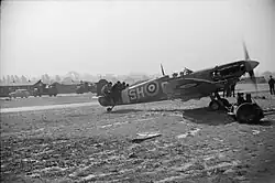 In the morning of 29 July, there was a major bombing attack on a convoy off Dover and No. 64 Squadron was one of those scrambled to engage it.[9] MacDonell destroyed one Ju 87, as well as shooting down a Messerschmitt Bf 109 fighter and damaging a second.[5][10] On 5 August MacDonell led his squadron across the English Channel where they attacked patrolling Bf 109s.[11] He shot down one Bf 109 north of Cap Gris-Nez with a second claimed as destroyed although this was unable to be confirmed. Another two Bf 109s that MacDonnel claimed to have destroyed to the north of Dover on 8 August also could not be confirmed.[5]