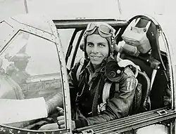 After earning his wings, he saw combat in China as a member of the 75th Fighter Squadron.[1] The unit was part of the 23rd Fighter Group, successor to the famed Flying Tigers. He became an ace,[2] credited with shooting down five Japanese fighters, four in a P-40 Warhawk and one in a P-51 Mustang, while flying 101 missions.