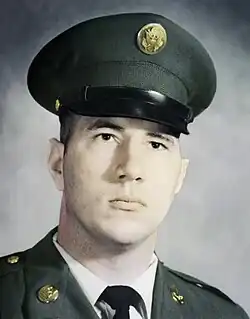 He enlisted in the U.S. Army on March 19, 1969. After finishing basic training at Fort Polk, Louisiana, he shipped out to South Vietnam in September, 1969. By then, he was a machine gunner in the 3rd Platoon, Company D, 2nd Battalion, 1st Infantry Regiment, 196th Light Infantry Brigade, 23rd Infantry Division (Americal Division).[3]