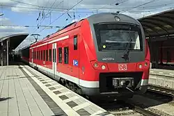 Since the timetable change in December 2009, the Fugger-Express has been running between Treuchtlingen and Munich every two hours as a Regional-Express (RE). Since the timetable change in December 2022, these two-hourly trains have been extended to the Würzburg–Treuchtlingen–Donauwörth–Augsburg–Munich route and operated RE 80 by Go Ahead Bayern. Other regional express trains on line RE 16 on the Nuremberg–Treuchtlingen–Donauwörth–Augsburg route increase the number of trains to approximately hourly intervals.[10] Treuchtlingen is today (as of 2023) with a slightly different symmetry minute every hour every half hour in regional traffic, where there are transfer options from the north (Nuremberg and Würzburg) to the south (Augsburg, Ingolstadt and Munich) and in the opposite direction.
