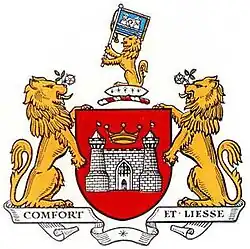 Like most of the early English football clubs, the original crest adopted by Doncaster Rovers was that of the local coat of arms. The coat of arms of Doncaster at the time was of two lions holding Yorkshire roses in their mouths as well as a red shield depicting the old medieval Doncaster Castle. The coat of arms is primarily red and white which explains the team's decision to adopt red and white as their colours. The club stopped using Doncaster's coat of arms in 1972 when the Viking crest was introduced.