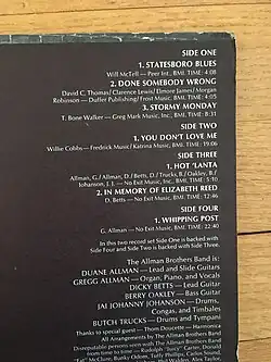 - ^ At Fillmore East (Album notes). the Allman Brothers Band. New York City: Capricorn Records. 1971. Inside cover. SD2-802.