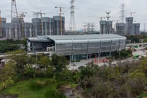 Dongchong Station (simplified Chinese: 东涌站; traditional Chinese: 東涌站; Cantonese Yale: Dūngchūng Jaahm) is an elevated station of Line 4 of the Guangzhou Metro.[1] It started operations on 30 December 2006. It is located at the junction of Jingzhu Expressway, Dongchong Avenue[2] and Maofeng Road[3] in Dongchong Town, Nansha District.[4]