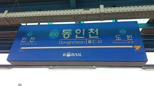 | Revised Romanization | Dongincheon-yeok | |||||||||||||||||||||