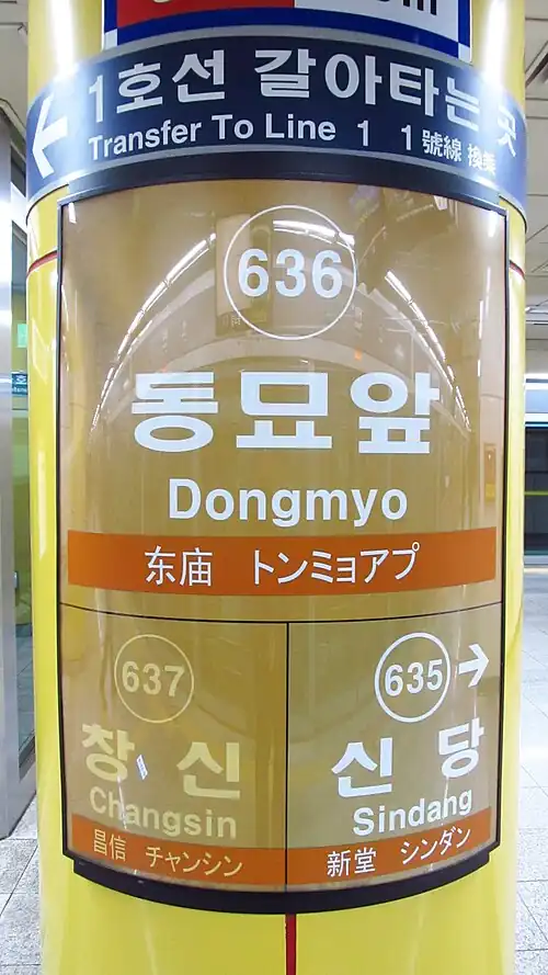 | Hangul | 동묘앞역 | |||||||||||||||||||||||||||||