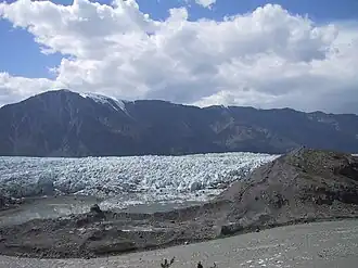 Donjek Glacier (Southern Tutchone: Dän Zhǘr[1]) is located in Kluane National Park, in Yukon, Canada, on the eastern side of the Saint Elias Mountains. Donjek Glacier is about 35 miles (56 km) long and extends into the Donyek River Valley 3,500 feet (1,100 m) to its terminus.[1] Centuries ago Donjek Glacier formed a dam, creating Donjek Lake which is estimated to have been 230 x 106 m3.[2]