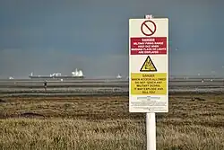 The bombing range first opened up in 1926[4][5] with three bombing targets including one which was illuminated for night time bombing practice. The range closed in 1946 but was re-opened in 1976 when RAF Theddlethorpe was closed due to complaints from those living nearby.[6] RAF Donna Nook is still used as an Air Weapons Range by UK, USAFE & NATO users and since 2008 has been administered by Defence Infrastructure Organisation (DIO), formerly Defence Training Estates (DTE).[7]