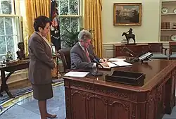 Shalala served as HHS secretary for eight years during the Clinton administration, becoming the nation's longest-serving HHS secretary.[22] In 1996, Shalala was the designated survivor during Clinton's State of the Union address.[23] She is the first Lebanese-American to serve in a cabinet position.[24]
